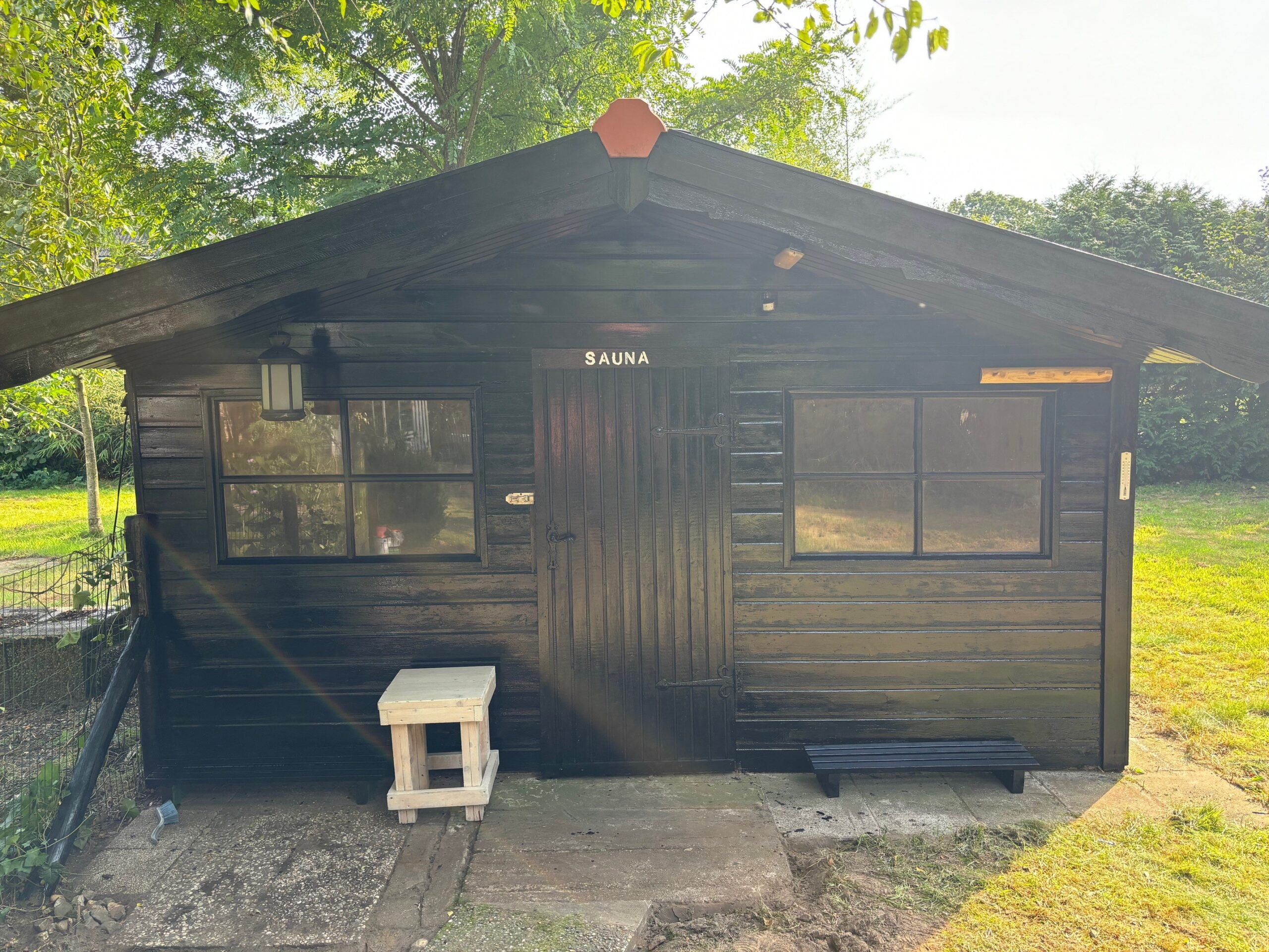 Onze houtgestookte sauna biedt een heerlijke ontsnapping. Geniet van sfeervolle verlichting in diverse kleuren, ontspannen muziek op de achtergrond en comfortabele zit- en ligplekken.
